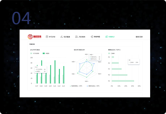 知識(shí)點(diǎn)掌握情況、學(xué)習(xí)天數(shù)、學(xué)習(xí)排名等各項(xiàng)重要指標(biāo)