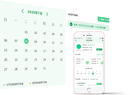 系統(tǒng)依據(jù)學(xué)員自身定制的學(xué)習(xí)計(jì)劃,制定相應(yīng)的學(xué)習(xí)任務(wù),學(xué)習(xí)任務(wù)量化,精確到天,保障學(xué)生做到日清日結(jié),掌握相應(yīng)的知識(shí)點(diǎn)。